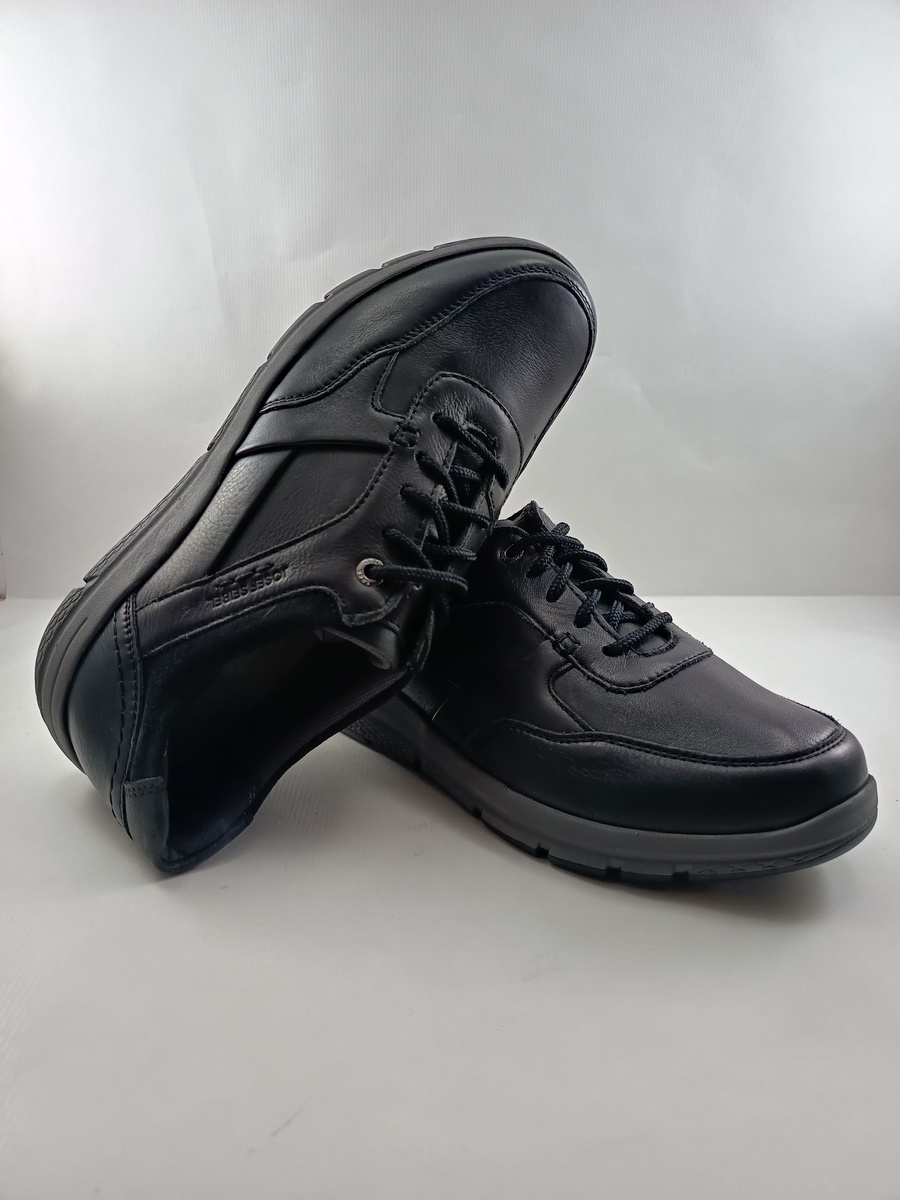 Semi-sport de piel negra con cierre de cordon y suela de goma, forro y plantilla textil.