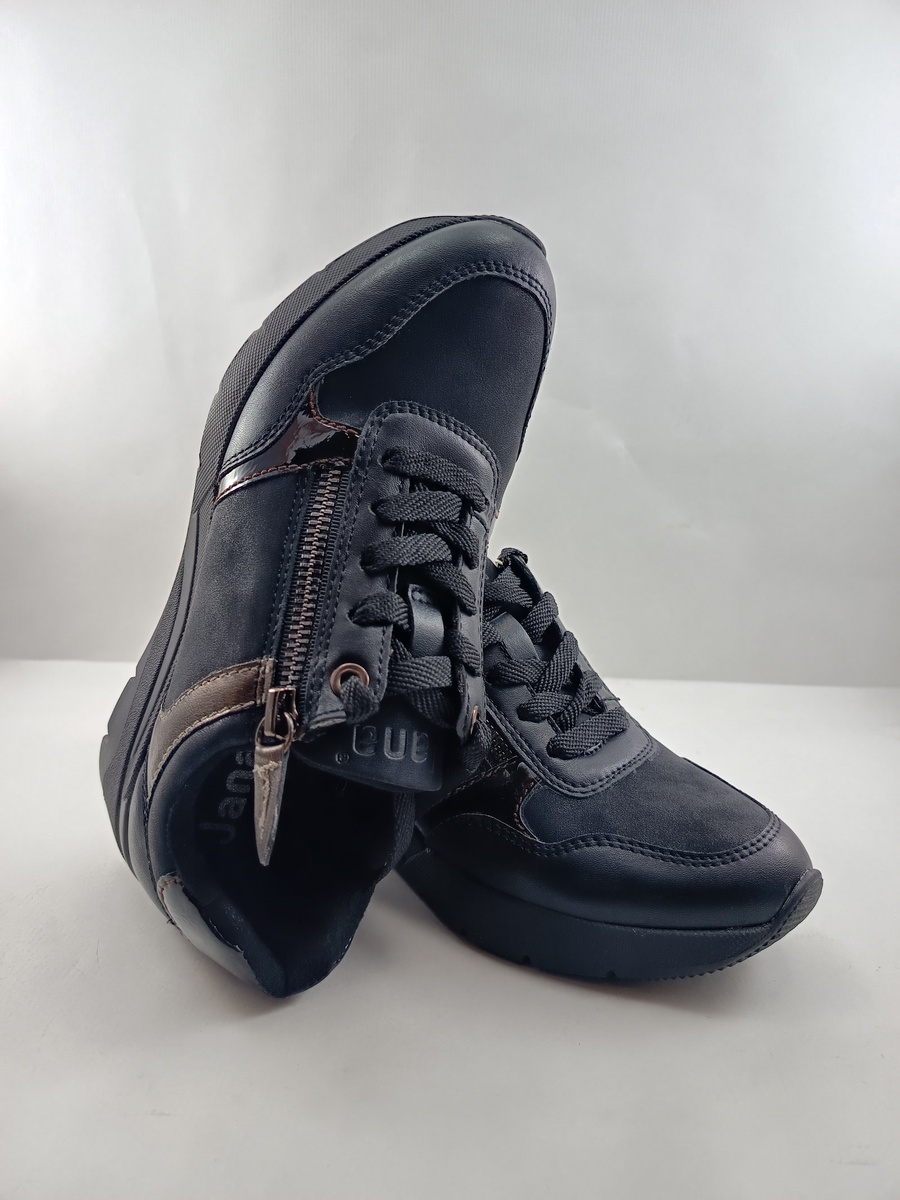 Semi-sport de piel negra con cierre de cordon y cremallera, Jana mod. 23763