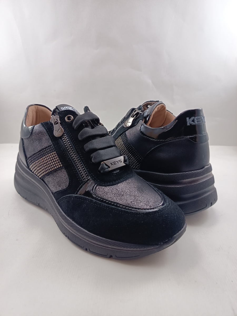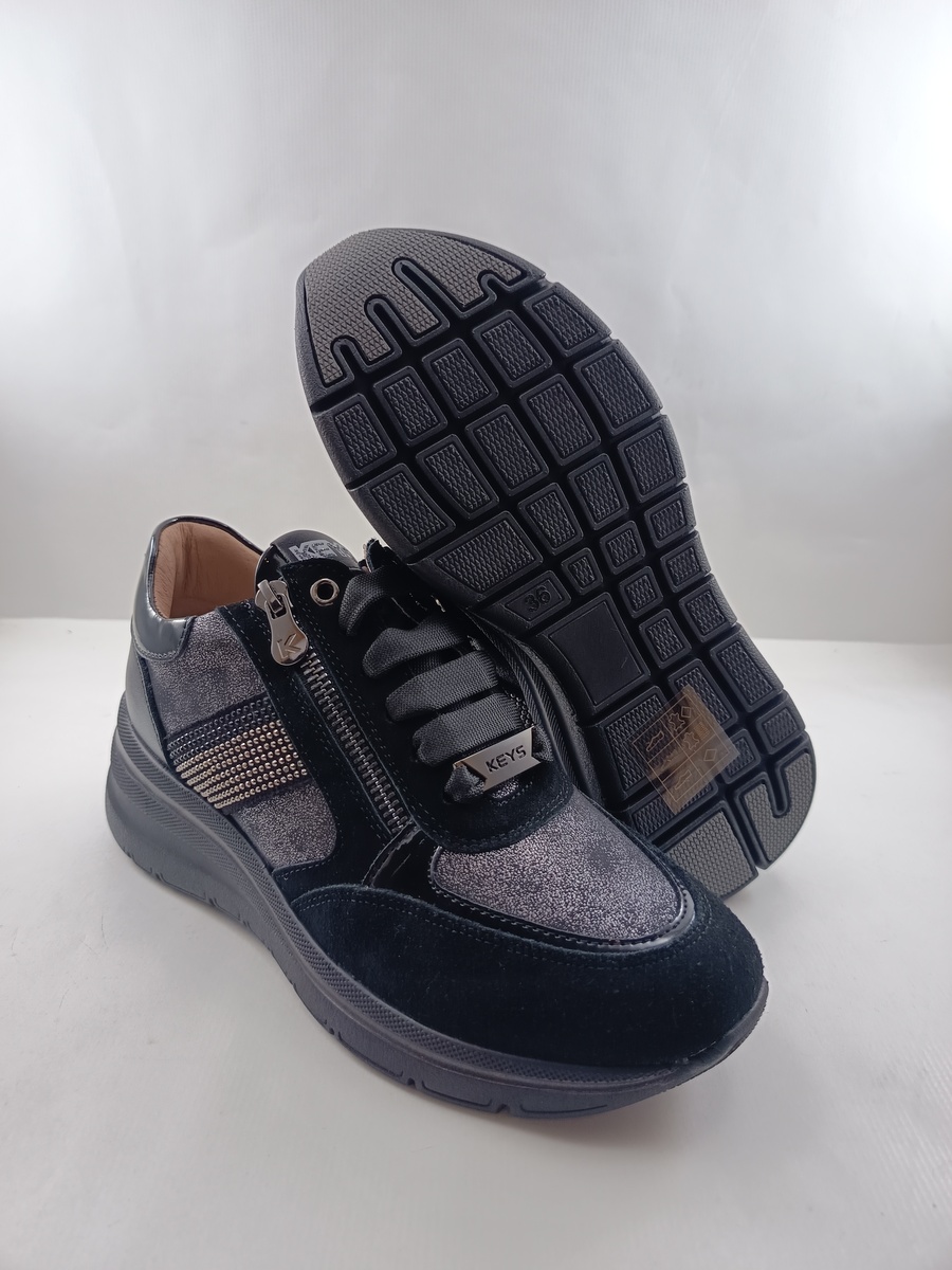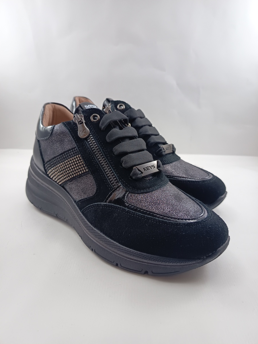 Semi-sport de piel negra con cierre de cordon y cremallera, Keys mod. 11264