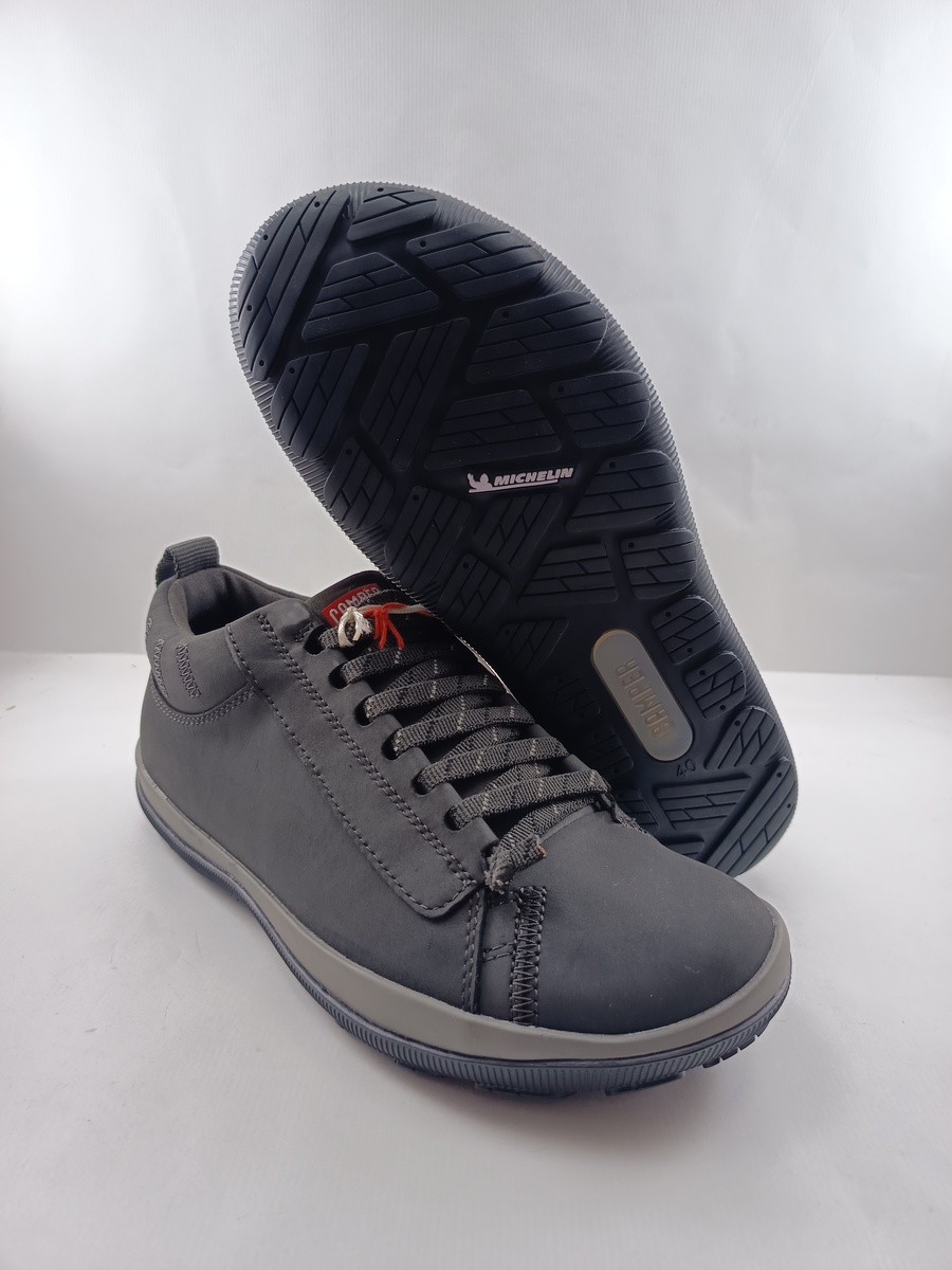 Semi-sport de piel negra gore-tex con cierre de cordon elastico y suela de goma, forro y plantilla textil, detalle de vira en gris.