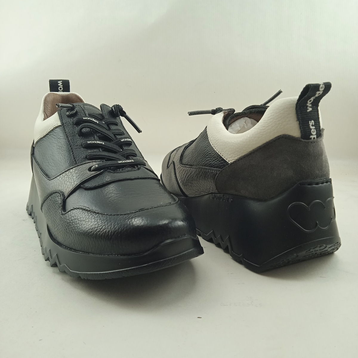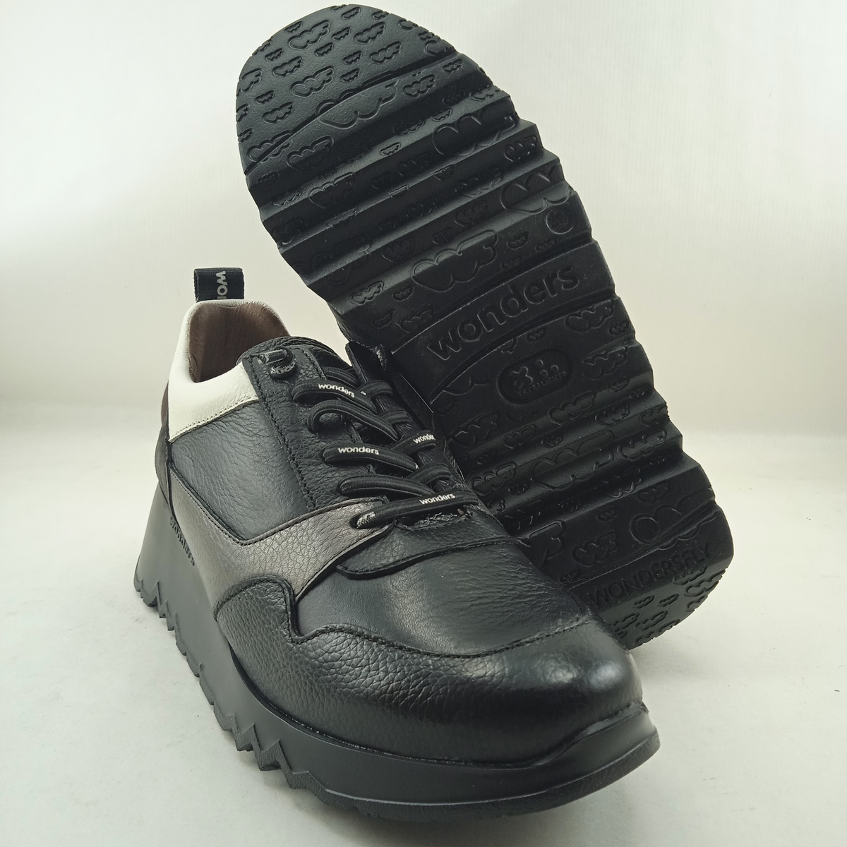 Semi-sport de piel negro con cierre de cordon elastico, Wonders mod. 6730
