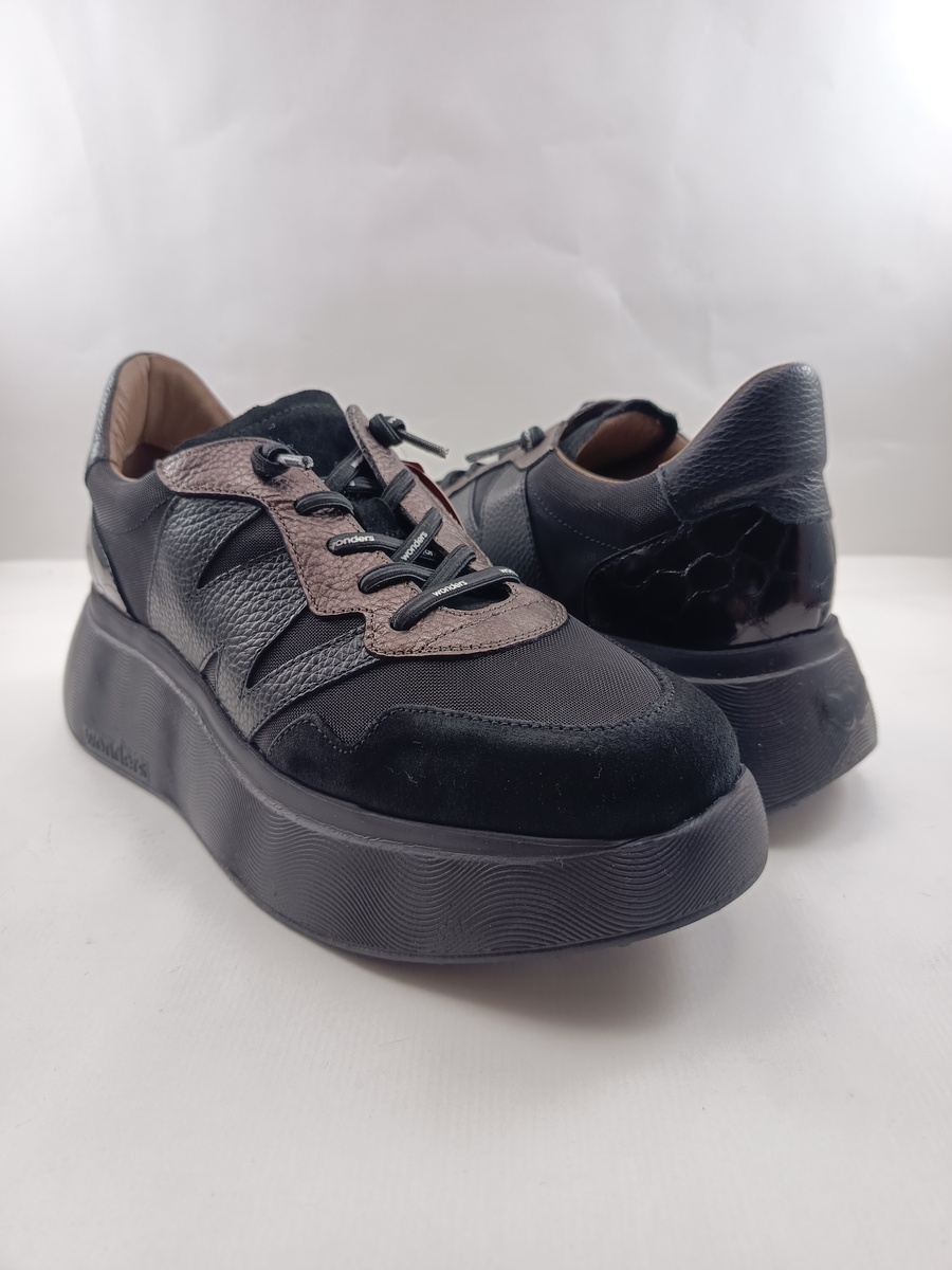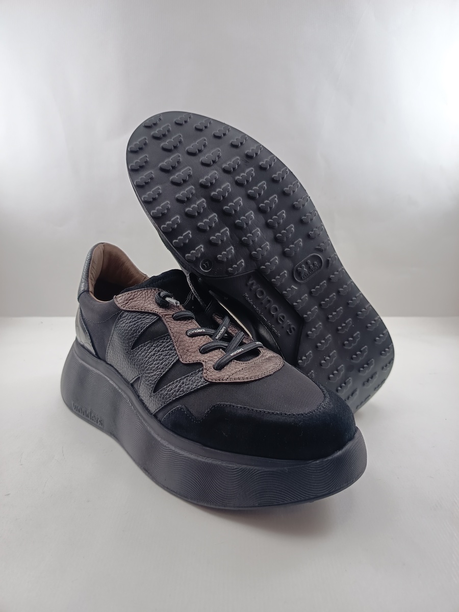 Semi-sport de piel negro con cierre de cordon elastico, Wonders mod. A-3631