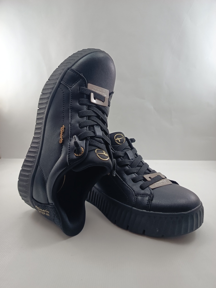 Semi-sport de piel negro con cierre de cordon, Tamaris confort mod. 83720
