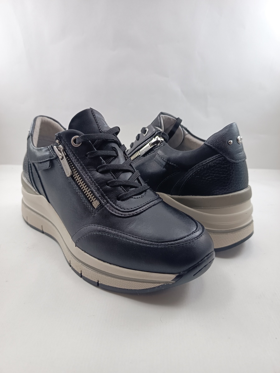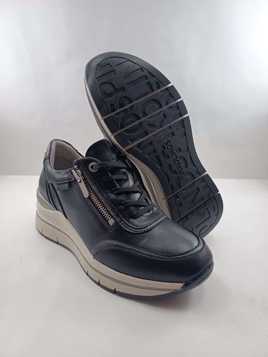 Semi-sport de piel negro con cierre de cordon y cremallera, Pikolinos mod. 6602C1