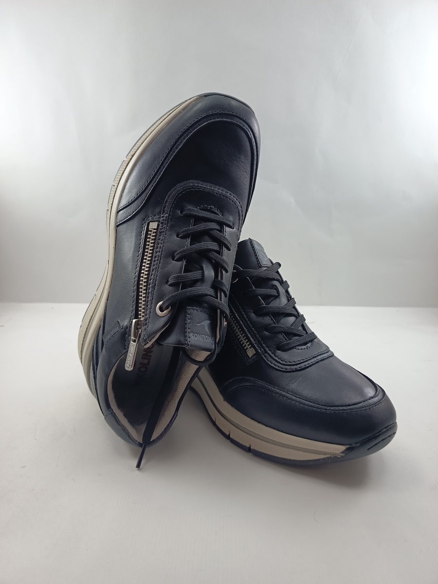 Semi-sport de piel negro con cierre de cordon y cremallera, suela de goma, forro y plantilla de piel, detalle de suela en blanco.