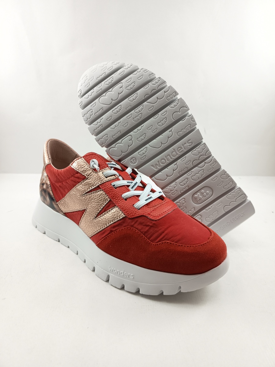 Semi–sport de piel rojo con cierre de cordon elastico, Wonders mod. 24100