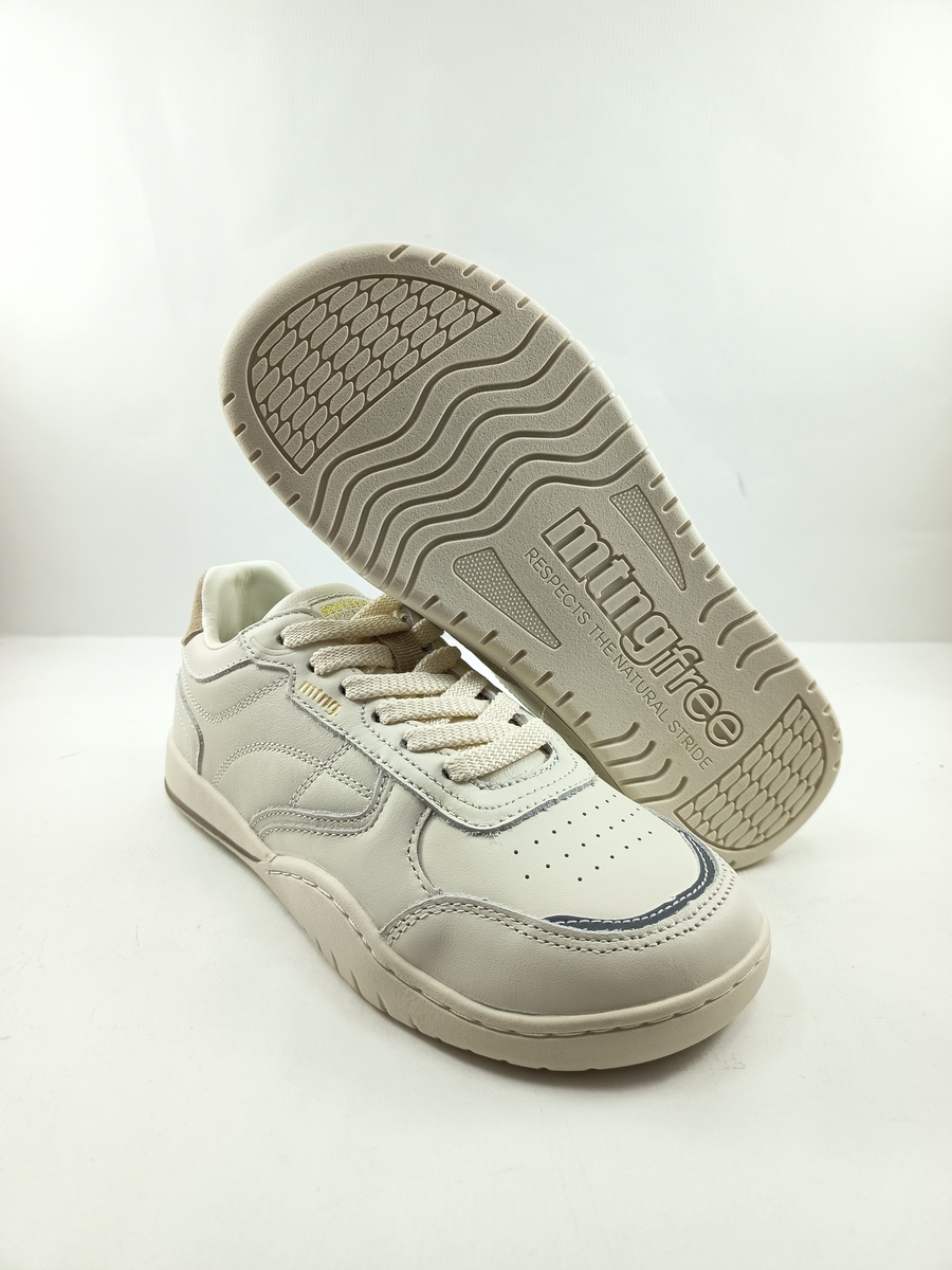 Semi-sport free de piel blanco con cierre de cordon y suela de goma, forro y palntilla de piel, detalle en cuero, modelo barefoot.