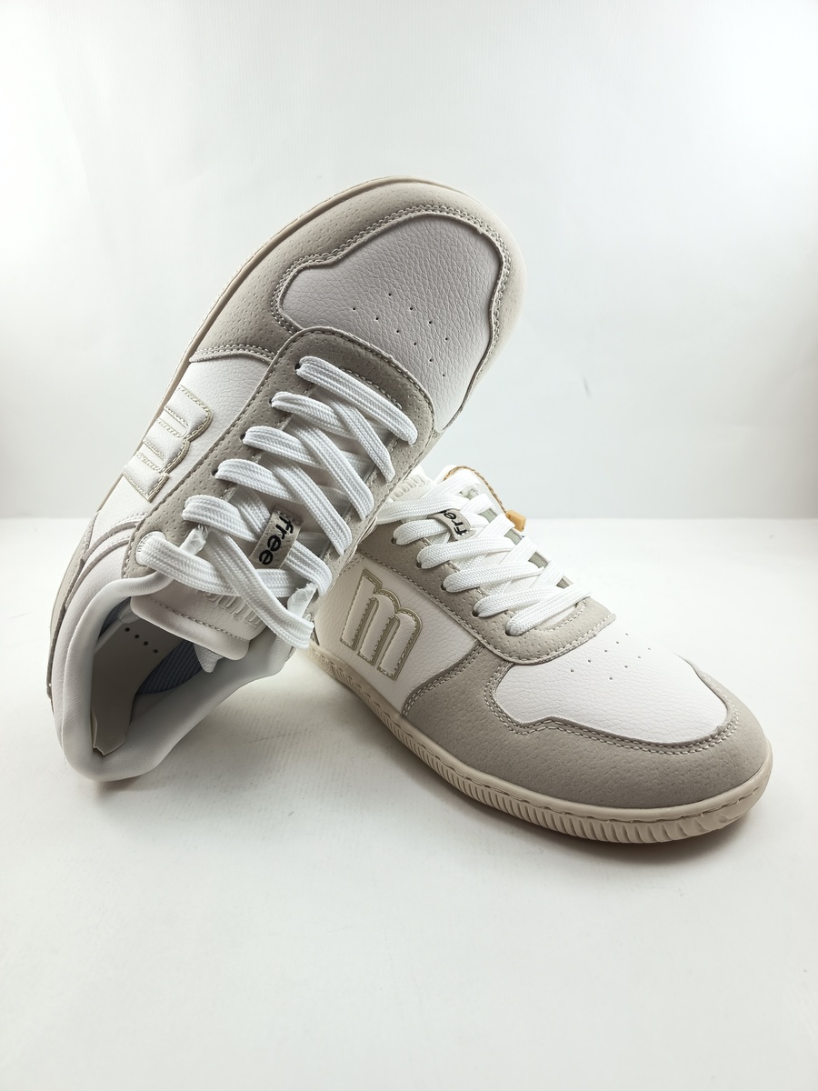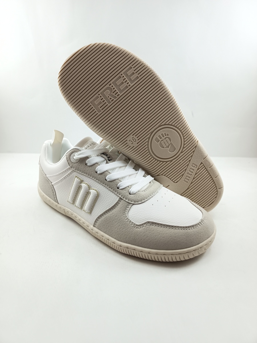Semi-sport de piel multicolor blanca y camel con cierre de cordon y suela de goma, forro y plantilla de piel, modelo barefoot.