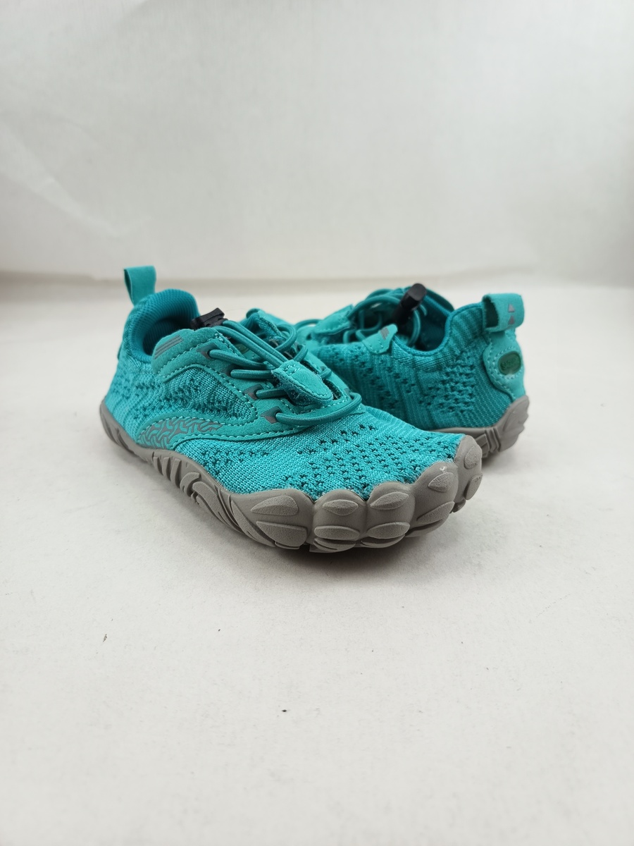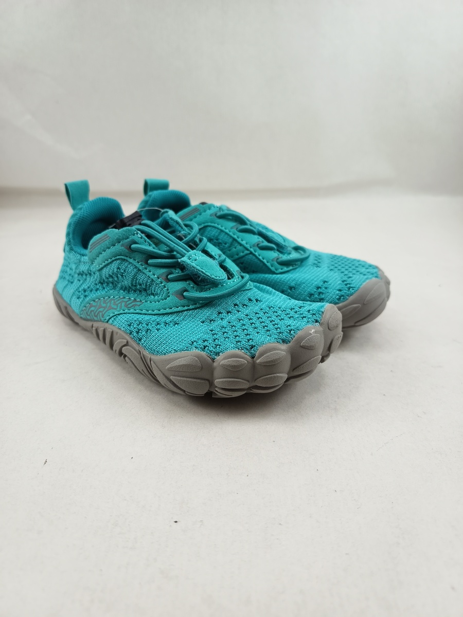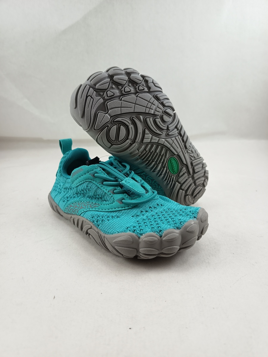 Semi-sport sintetico azul con cierre de cordon elastico y suela de goma, forro y plantilla textil, modelo barefoot.