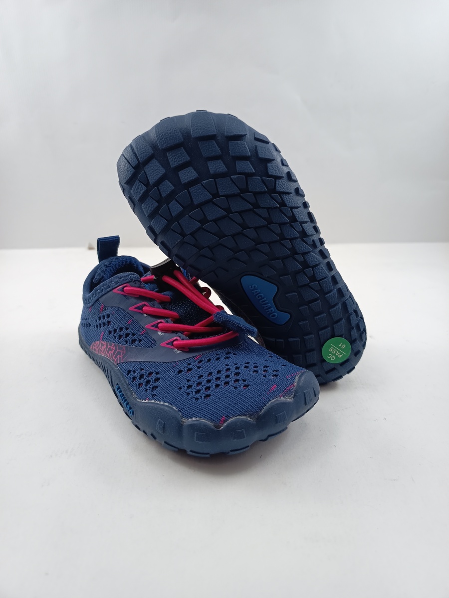 Semi-sport sintetico azul con cierre de cordon elastico y suela de goma, modelo respetuoso.