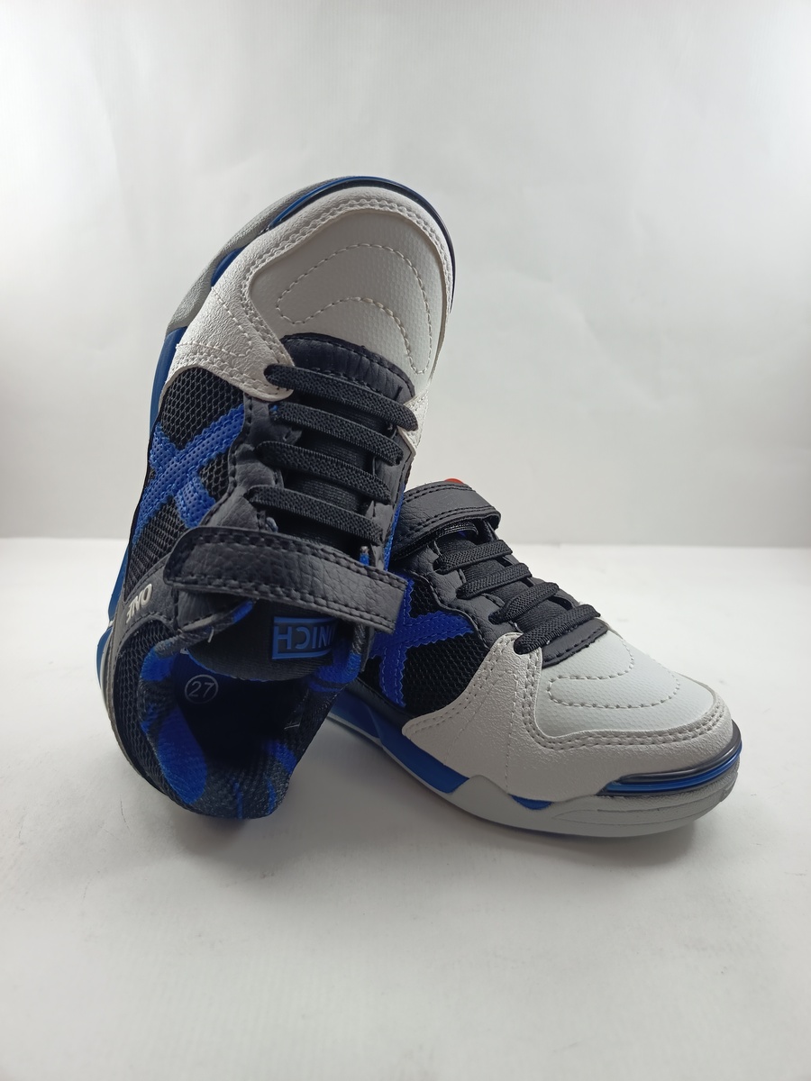 Semi-sport sintetico azul con cierre de velcro y suela de goma, forro y plantilla textil.