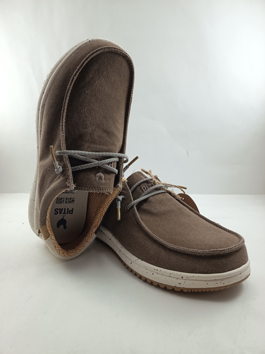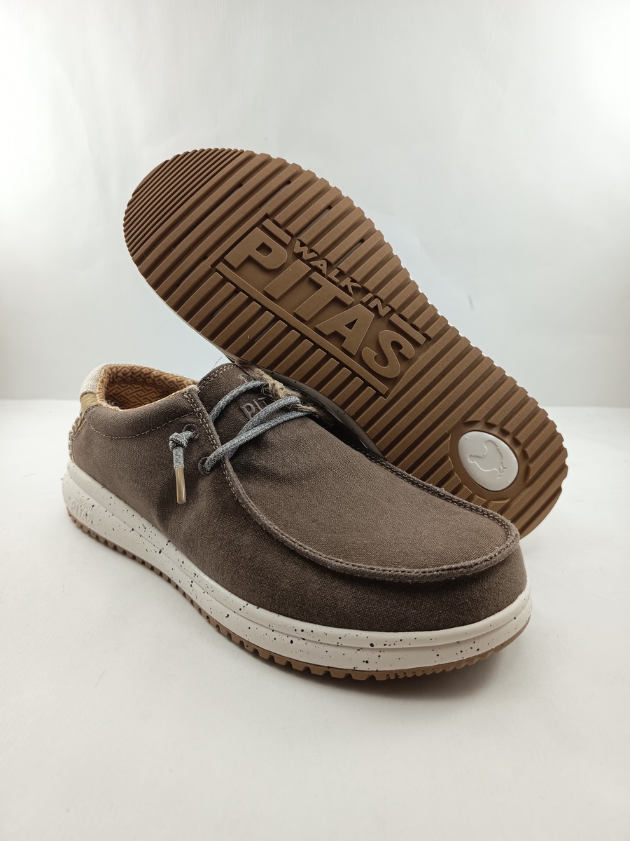 Semi-sport sintetico de lona de algodon transpirable y resistente, suela de EVA lo que las hace ligeras y flexibles, cierre de cordon elastico, plantilla acolchada y extaible.