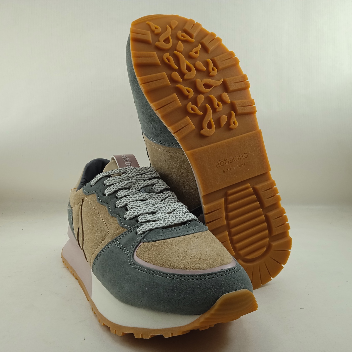 Semi-sport sintetico camel y gris con cierre de cordon, Abbacino mod. 40090-43