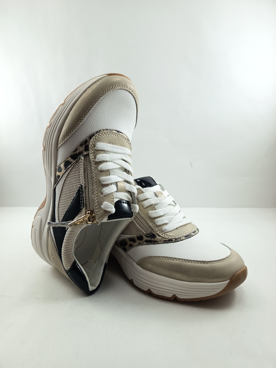 Semi-sport sintetico crema con cierre de cordon y cremallera, suela de goma, forro y plantilla textil, detalle de animal print en empeine.