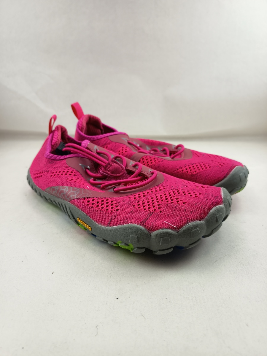 Semi-sport sintetico fuxia con cierre de cordon elastico y suela de goma, forro y plantilla textil.