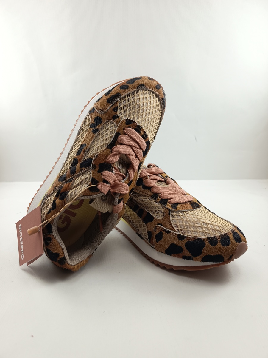 Semi-sport sintetico multicolor con cierre de cordon y suela de goma, forro y plantilla sintetico, detalle de animal print en toda ella.