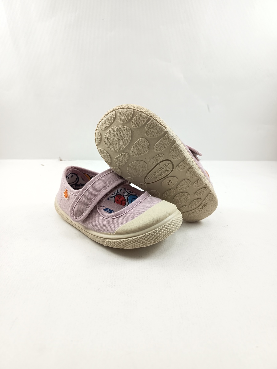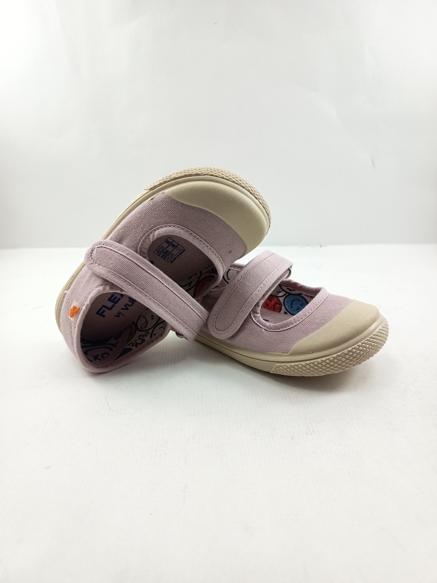 Semi-sport sintetico rosa tipo mercedes con cierre de velcro y suela de goma, forro y plantilla textil, detalle de puntera con goma.