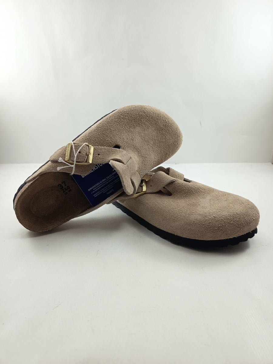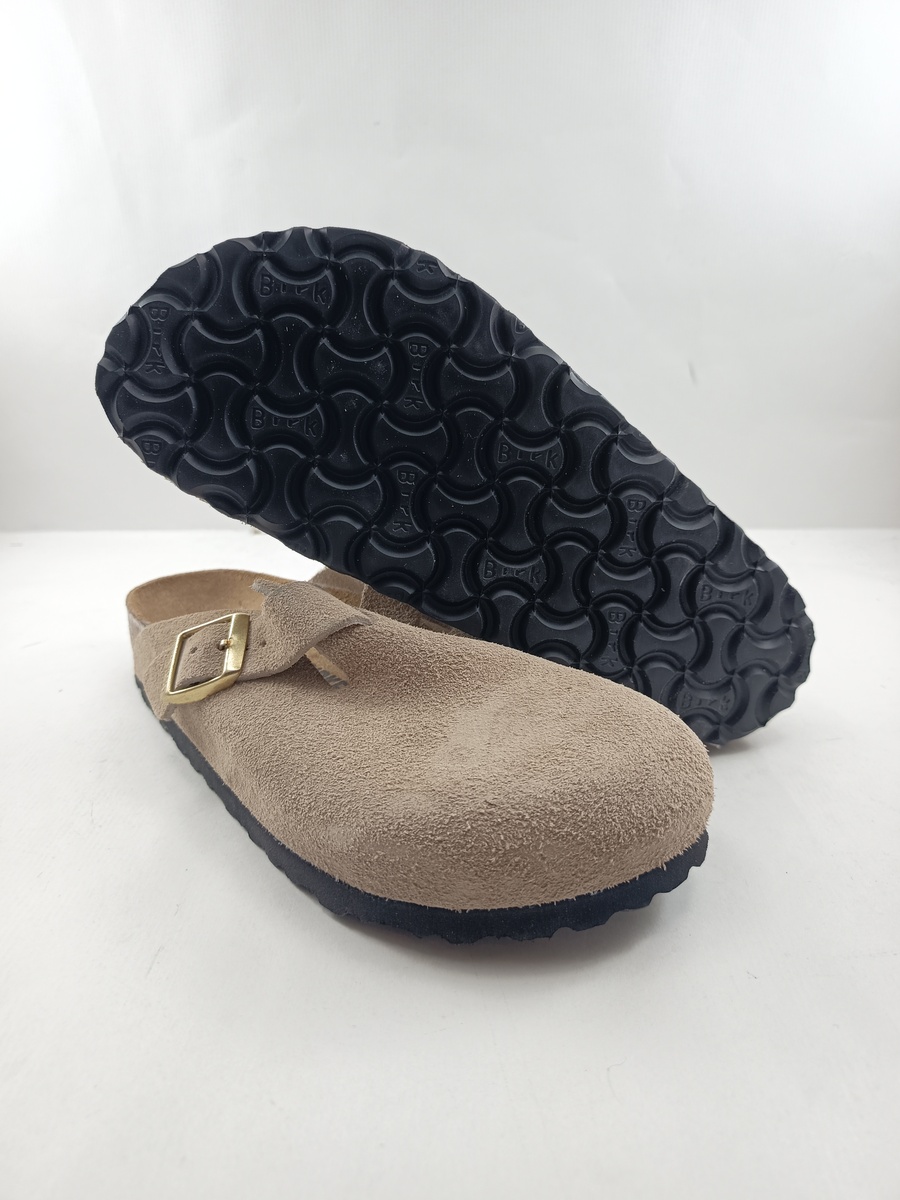 Zueco de serraje crema con cierre de hebilla, Birkenstock mod. Boston