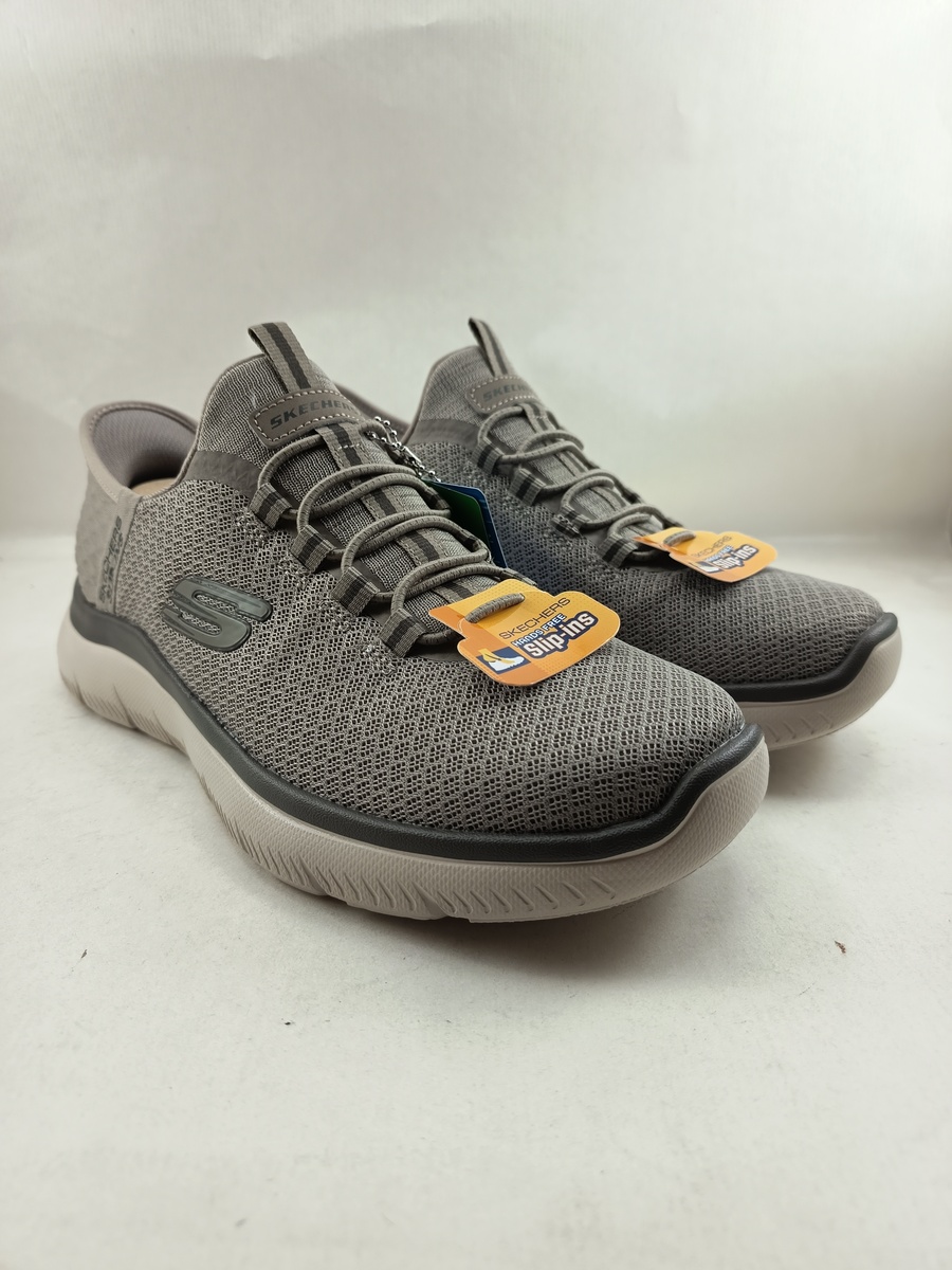 Semi-sport sintetico camel sin cierres y suela de goma, forro y plantilla textil, detalle de suela en blanco, modelo slip-ing.