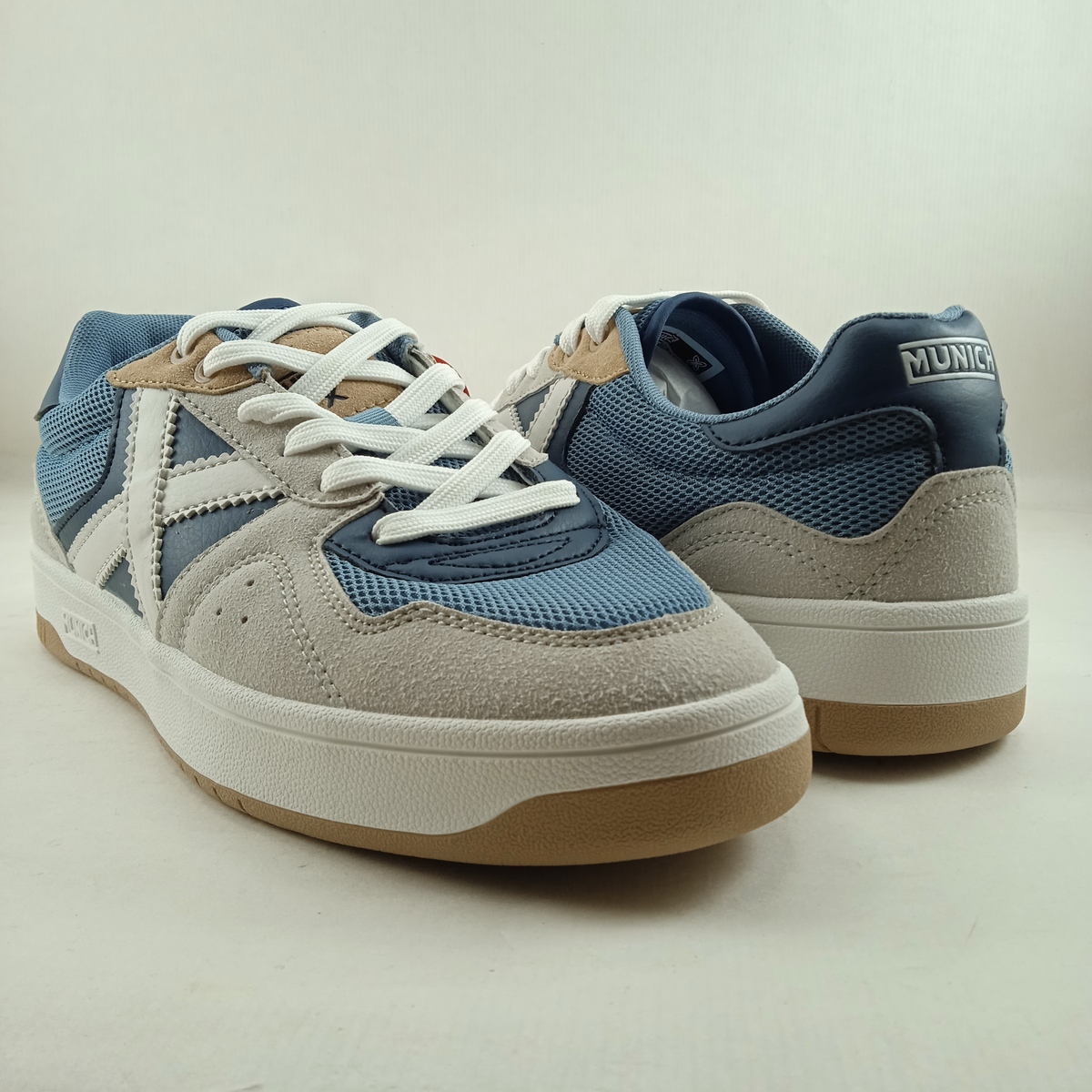 Semi-sport de piel azul con cierre de cordon, Munich mod. 4878002