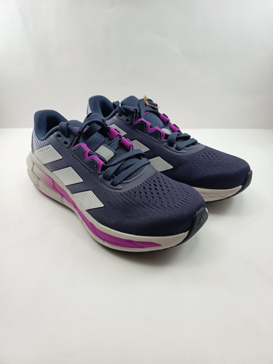 Deportivo sintetico azul con cierre de cordon y suela de goma, forro y plantilla textil, detalle de acabados en lila.