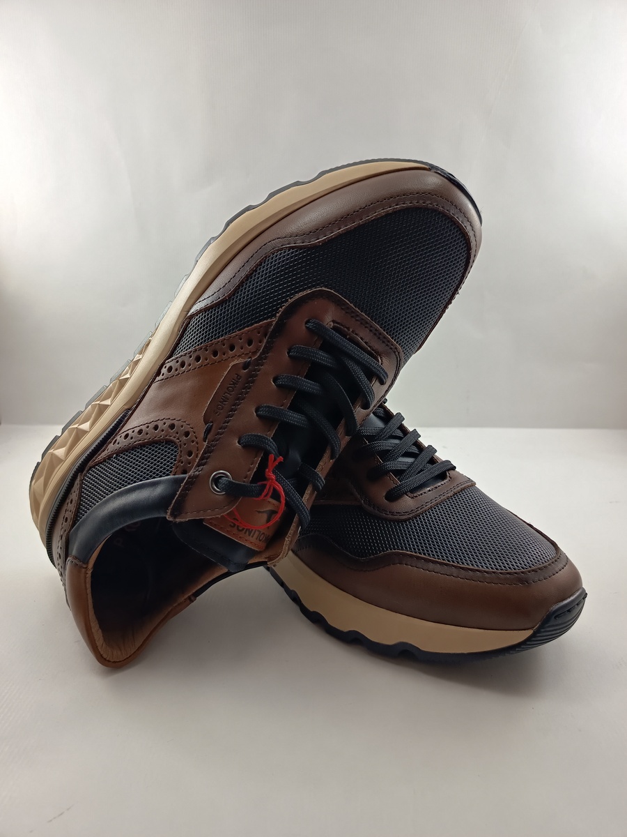 Semi-sport de piel negro con cierre de cordon y suela de goma, forro y plantilla de piel.